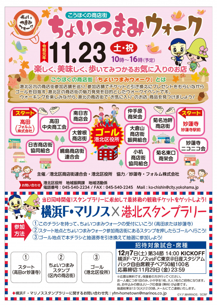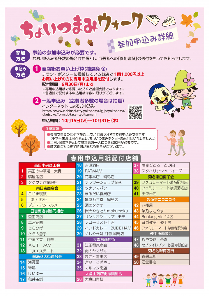 “港北区内の商店街参加店舗を巡り、参加店舗でチケットと引き換えにプレゼントをもらいながらゴールを目指す、港北区の商店街の魅力発見を目的としたウォークイベントです。