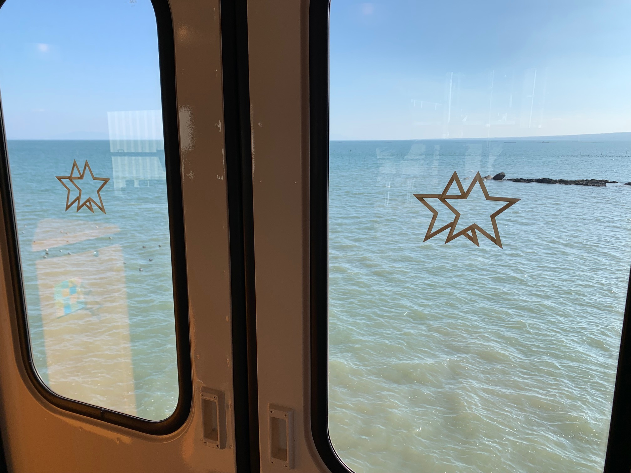 車窓からは有明海と大村湾の
