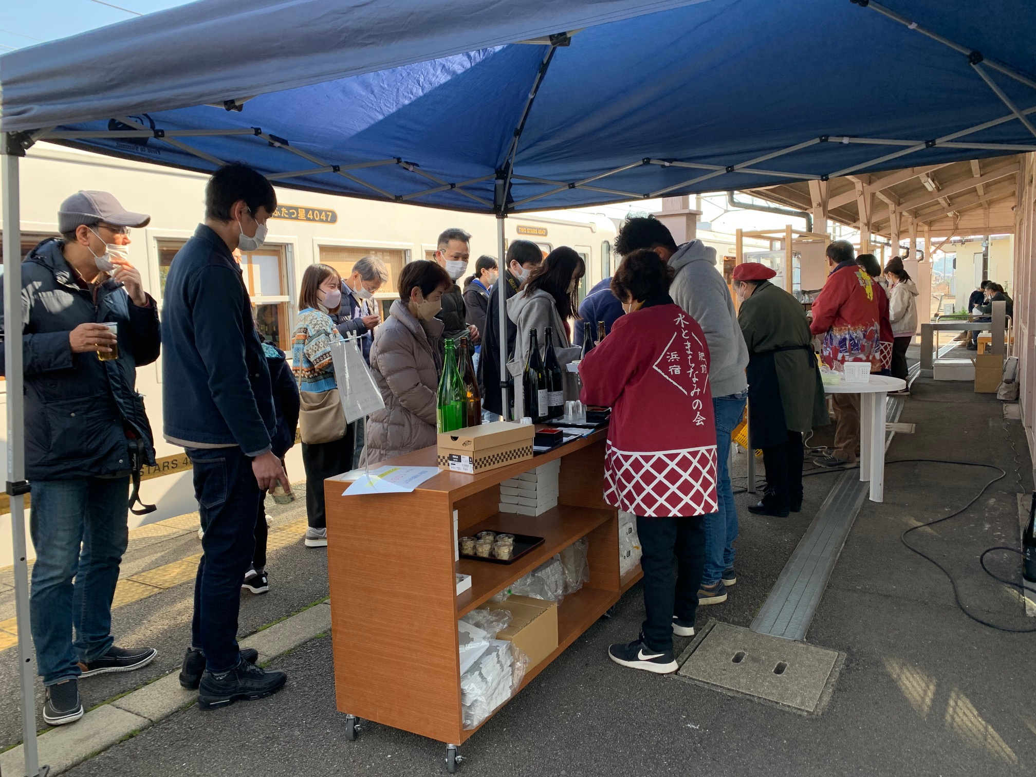 途中駅で停車しながら地元の方のおもてなしが